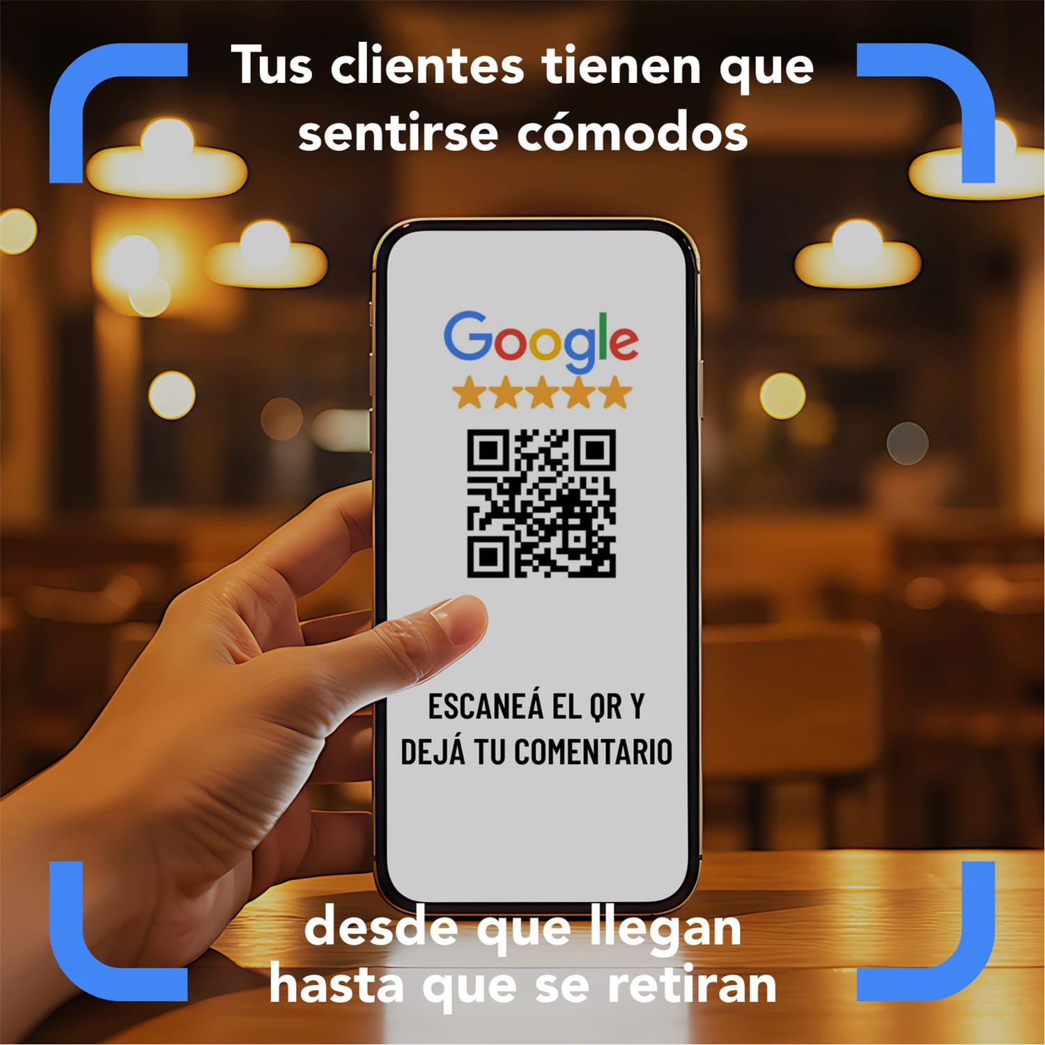 Escanean al irse y te dejan 5 estrellas en Google al instante. Tu negocio sube de posición orgánicamente y le gana a la competencia de tu barrio sin gastar un centavo en publicidad.