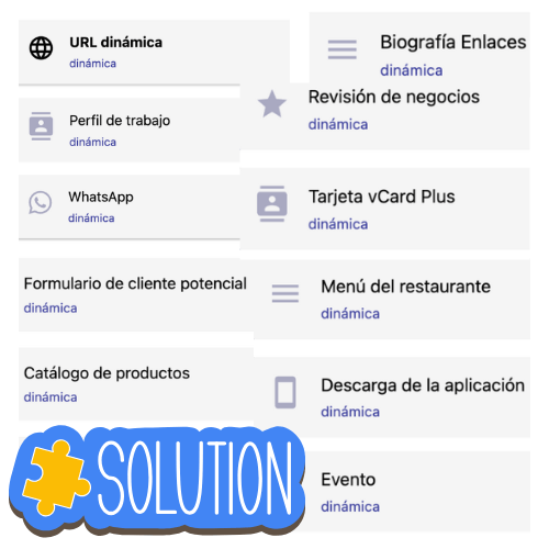 QR Experto permite crear 11 Soluciones QR dinámicos para: reseñas en Google, conexión a WiFi, redes sociales, grupos de WhatsApp, V-Card digital, club de beneficios, menú digital, catálogo de productos, URL personalizadas y botones de contacto. Todos editables y personalizables.